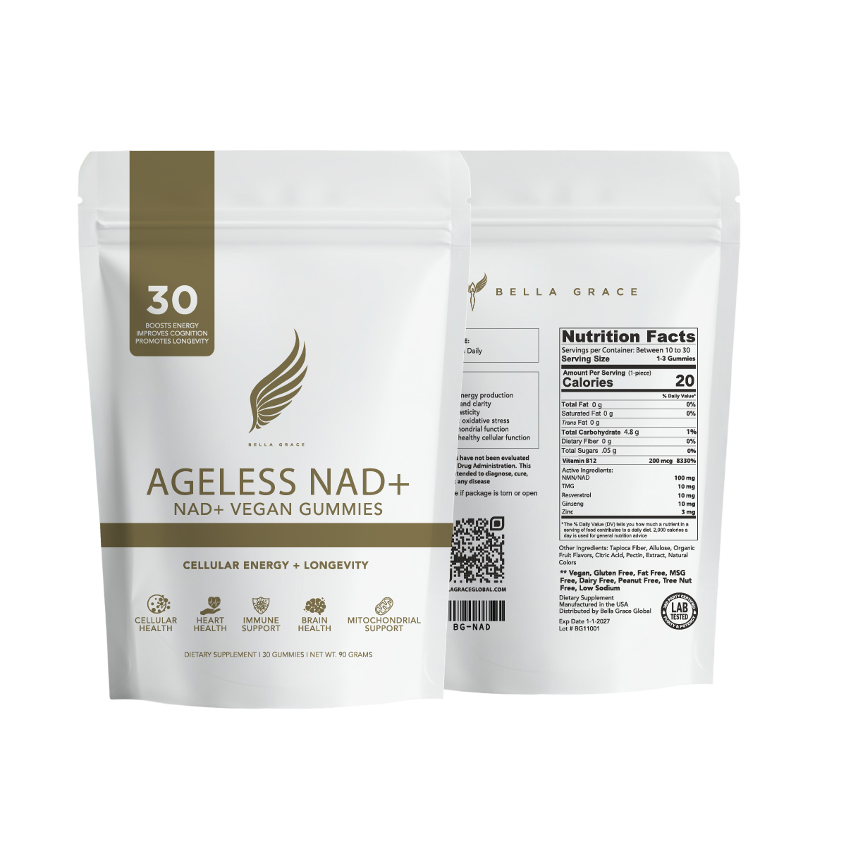 Ageless NAD+ is a breakthrough daily gummy designed to naturally increase your body’s NAD+ levels, supporting cellular energy, sharper focus, and healthy aging.